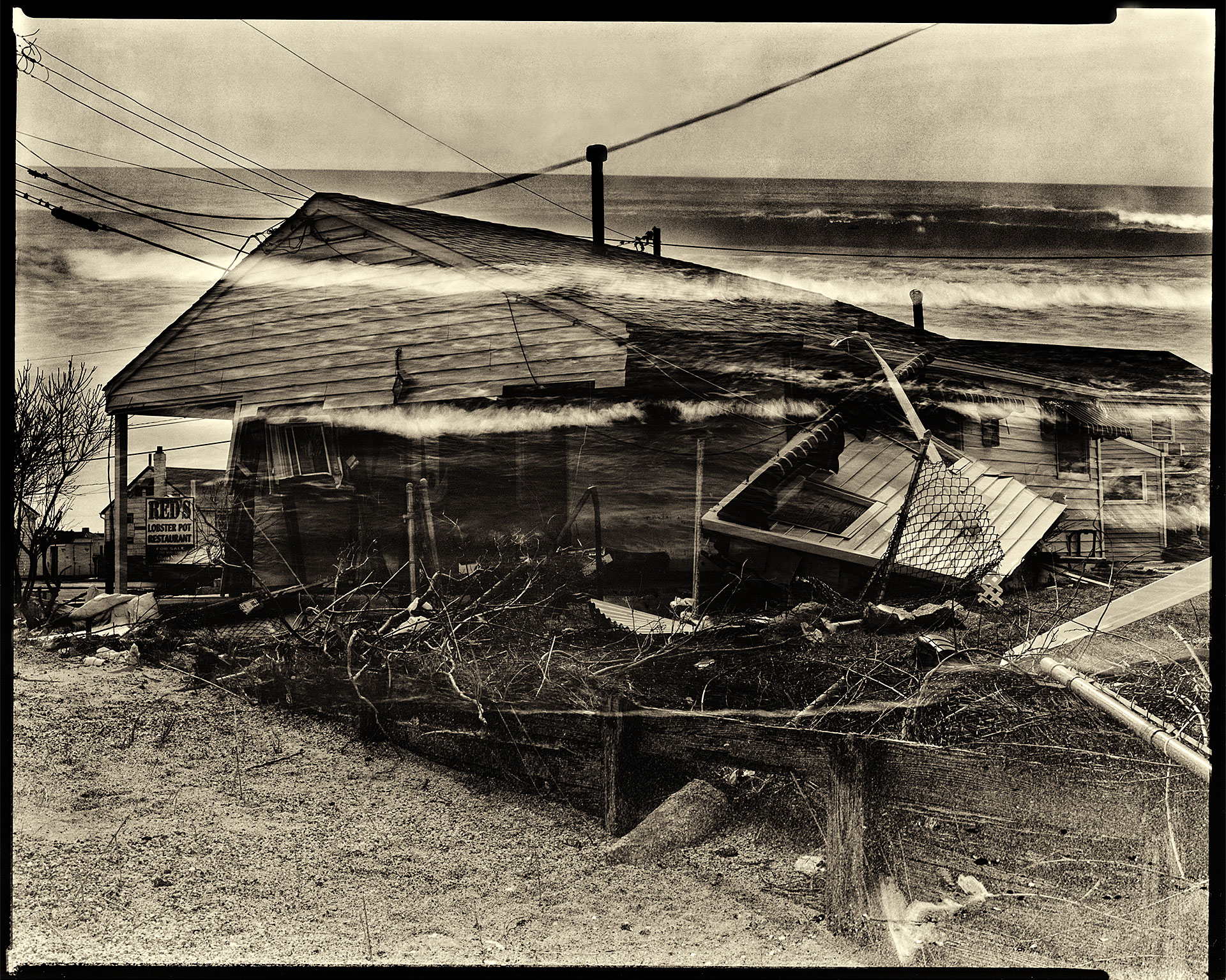 It's been almost a year now since Hurricane Sandy. I am a native of Hazlet, N.J., I have spent much of my life in and among the shore communities of South Jersey. For the past 13 years, my parents have lived in Manasquan, a small town near Point Pleasant, Seaside and Belmar. My parent's house was flooded with about two feet of water. They were lucky. Many of their neighbors had fared much worse. I have been working on this series since then. I went down there with my 8x10 inch camera and some black and white film. My idea was to take double exposures of the affected houses, and try to convey the sheer power of the force that damage them.